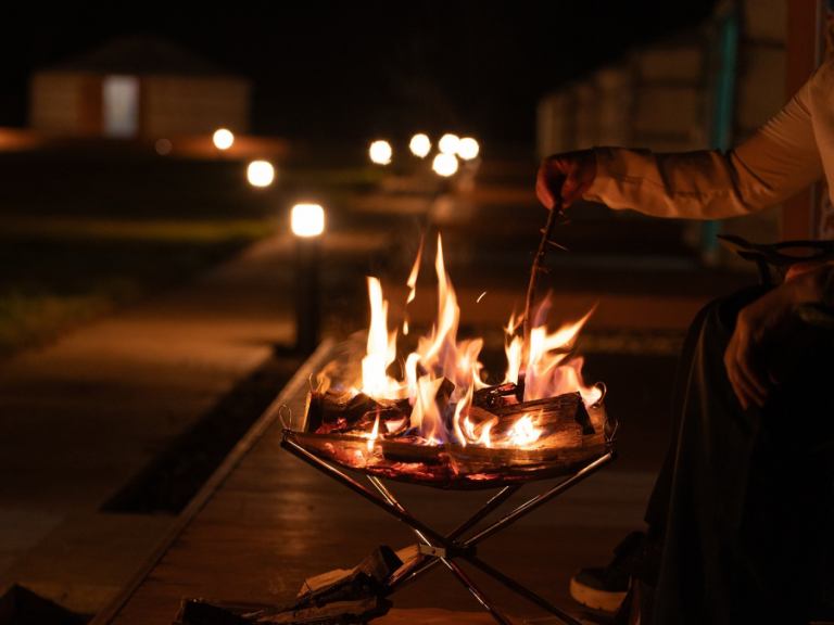 パチパチと薪がはぜる音に、時間を忘れる夜。
